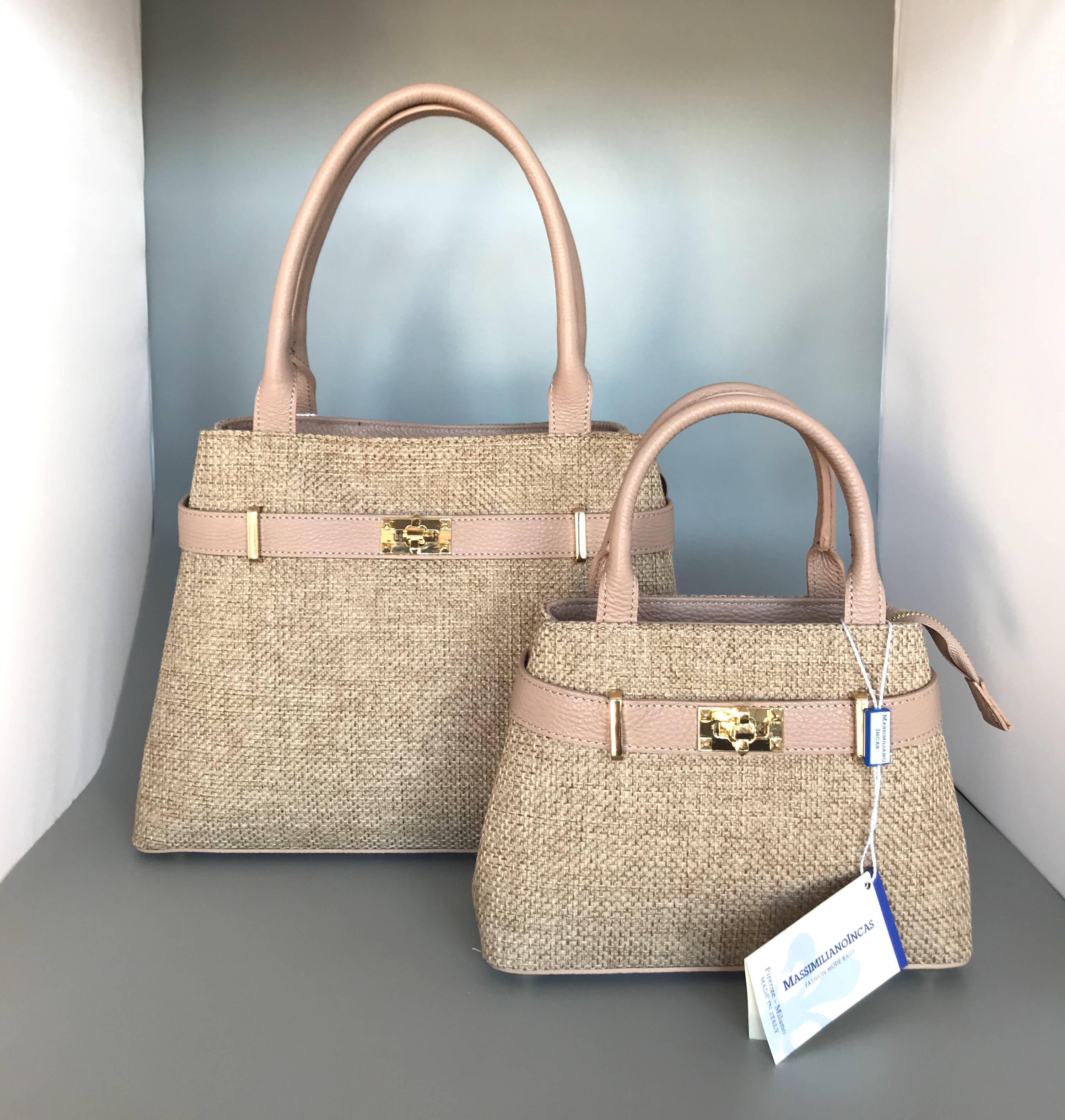 Kleine Handtasche im Leder-Textil-Mix von Massimilianoincas