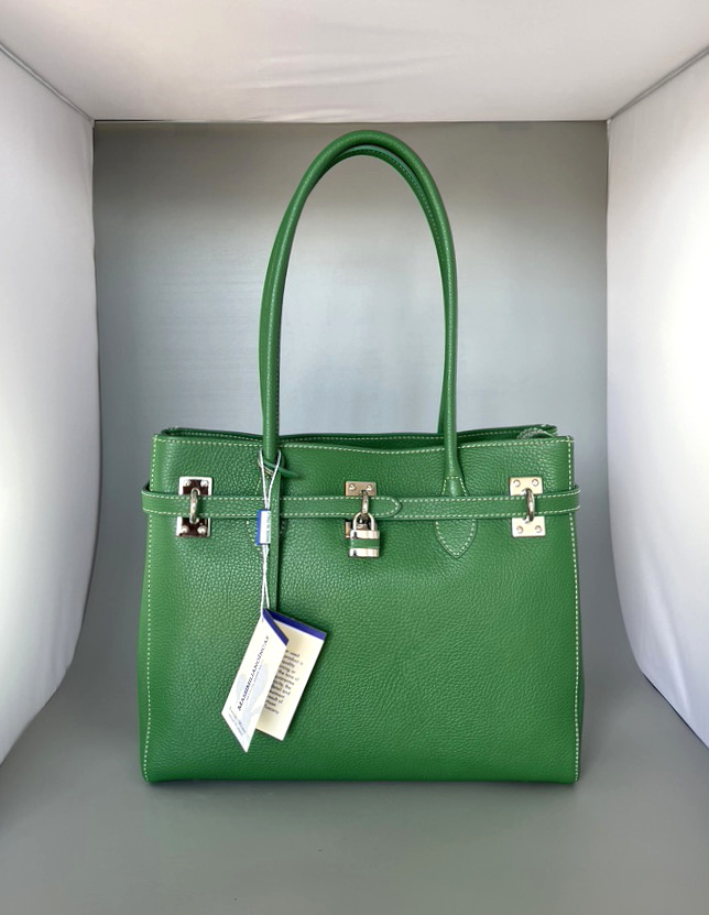 Grüne Lederhandtsche im Hermèsstil