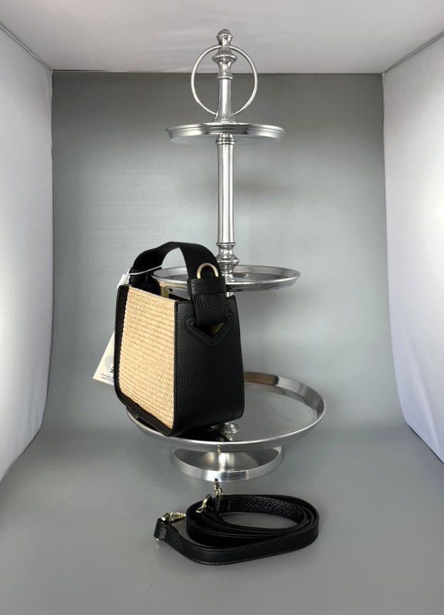 Kleine Tasche im Leder-Bast-Mix in zwei Farben