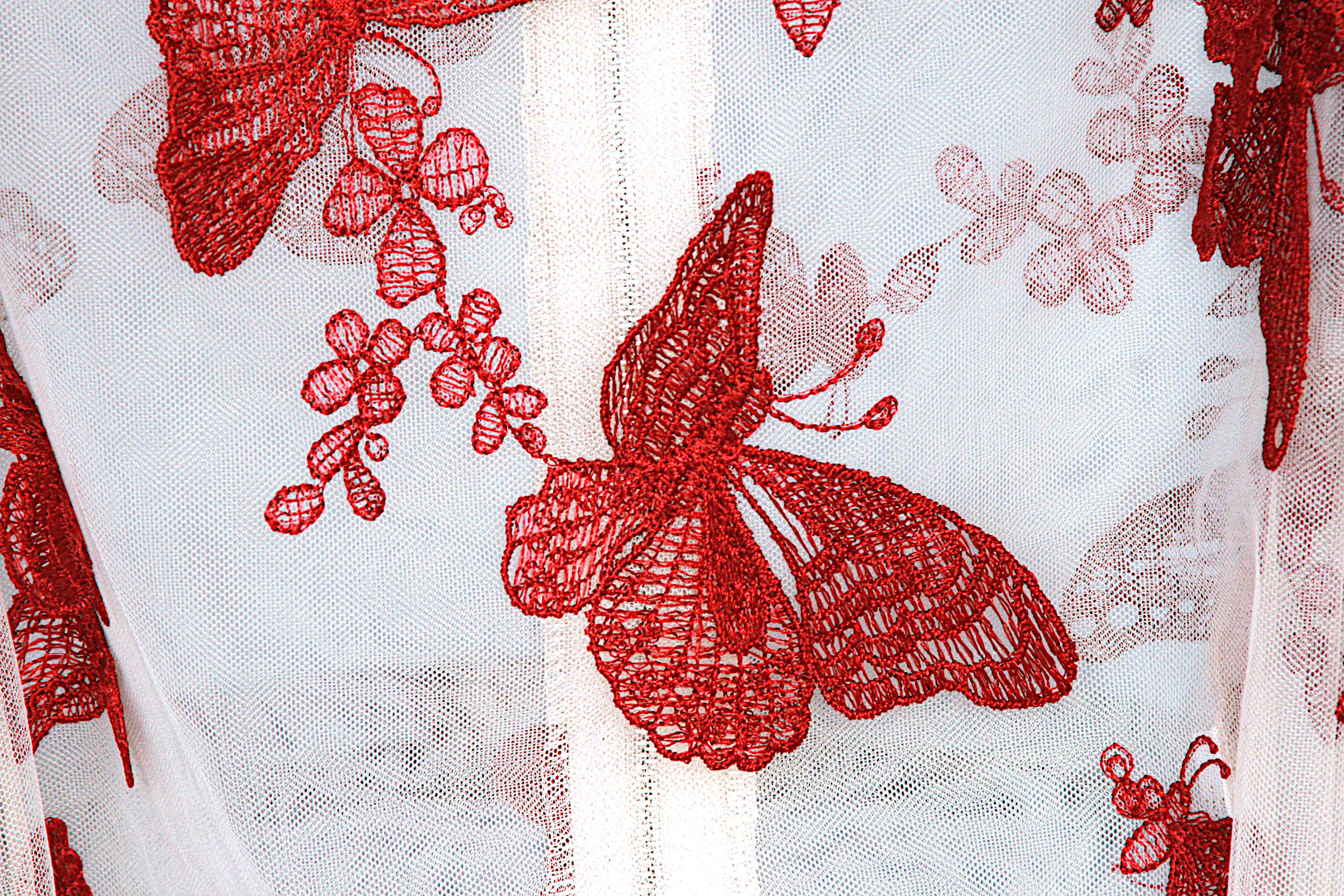 Puffärmelbluse mit dunkelroten Schmetterlingsapplikationen von Mauro Menichetti