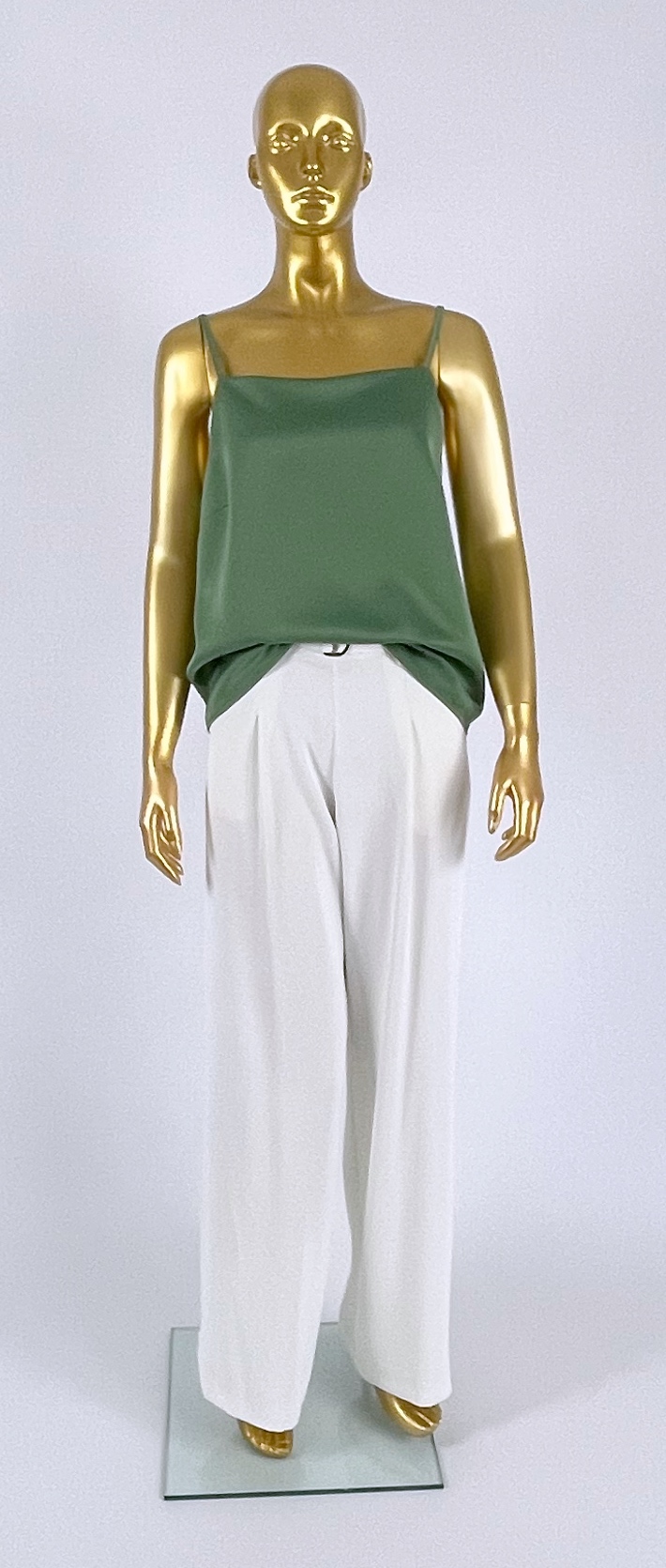 Top von Le Streghe aus der Gold Collection in fließender Qualität. Wunderbar kombinierbar zu Hosenanzügen etc. In den Farben grün und cognac.